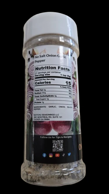 No Salt Onion Garlic Pepper! No Salt needed in this one when onion, garlic, and pepper mix together in this must have blend. Use on any dish to create this smooth warm flavor.